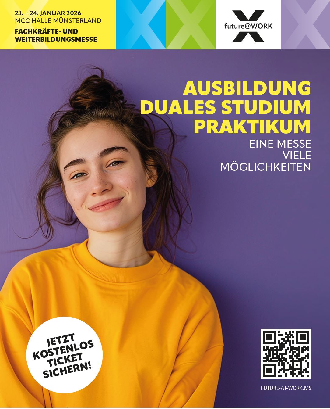 Bei der Fachkräfte- und Weiterbildungsmesse future@WORK dreht sich alles um die Zukunft des Arbeitslebens. 2026 bieten wir Euch wieder ein spannendes Angebot. Die Halle Nord wird zur starken Plattform für Fachkräfte von heute und morgen. Ob Suche nach einem Ausbildungsplatz, Weiterbildungsmöglichkeiten oder neuen Jobchancen – die Messe bietet vielfältige Perspektiven, inspirierende Impulse und ausgiebiges Networking.